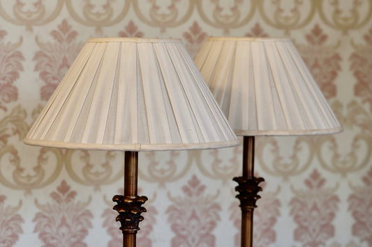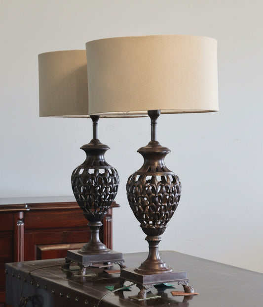 Pair of large ornate metal Table Lamps with lampshades
