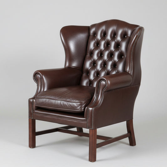 Pair of Georgian style leather button-upholstered Wingback Armchairs
