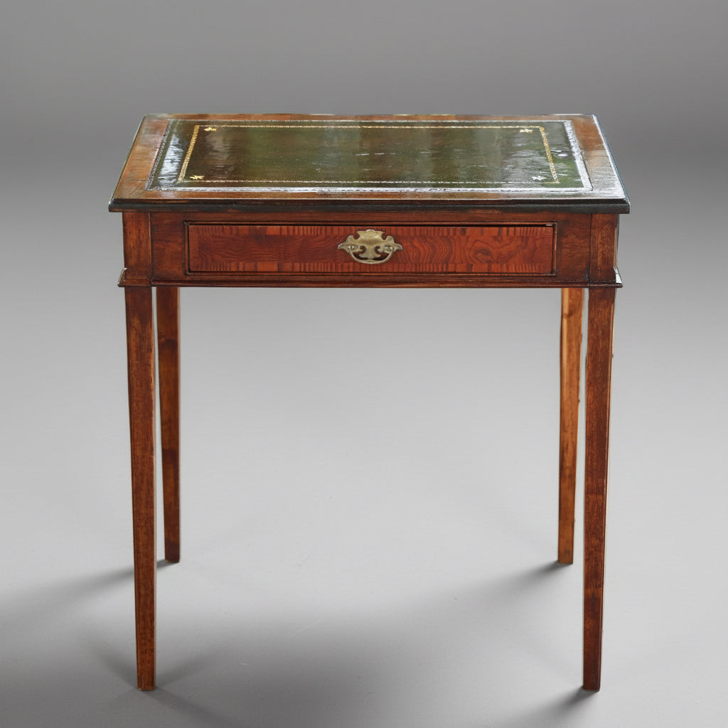 A beautiful little leather topped Writing Table, with tooled leather top above a frieze drawer, on tapering square legs.