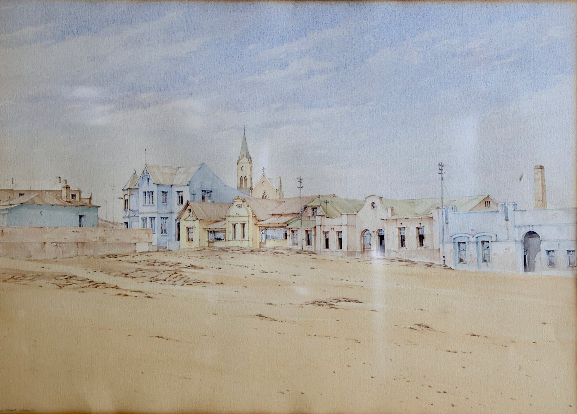 Signed Simon Parkin of "Kirch Street, Lüderitz" - Watercolour